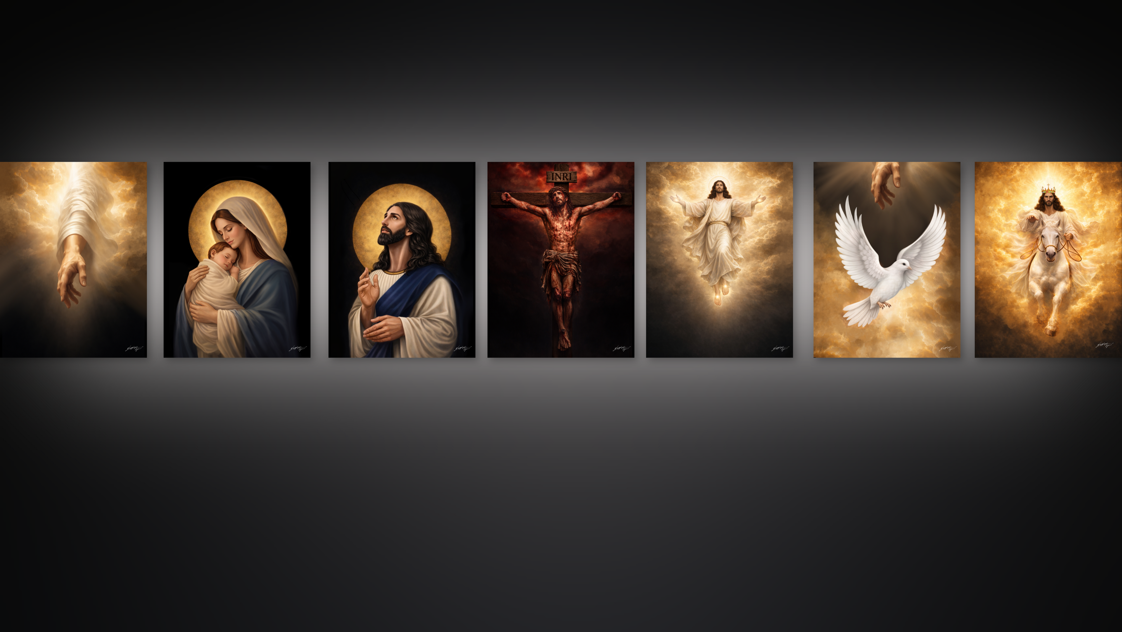 This collection reflects the majesty of Christ, His sacrifice, His resurrection, and His coming glory. Each painting is designed to bring reverence, strength, and eternal perspective into your space.